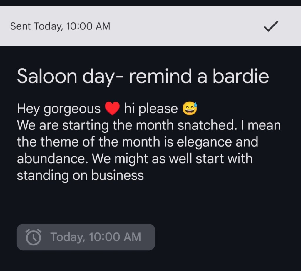 Since quitting and way before quitting I had neglected myself. That is the major reason why elegance had to be included in the theme for this month. The lady who did my hair was so gracious, a darling. She is among the people who will be lingering on my mind when I travel back. I am not quite sure where I’ll be traveling back to yet. But I know it is going to be a journey of good energy, good memories and abundance.
