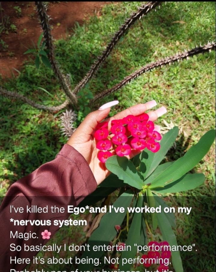 I don’t entertain performance. Here, it’s about being. Not performing…….”